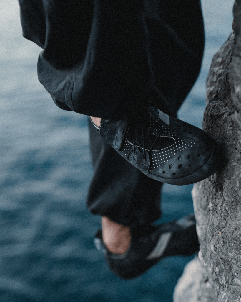 Le chausson d’escalade Blackbird casse ce compromis. Grâce à sa plaque carbone, il offre une rigidité maîtrisée, qui soutient le pied sans le figer. On conserve une vraie capacité à ressentir la prise, tout en bénéficiant d’un appui solide et stable.